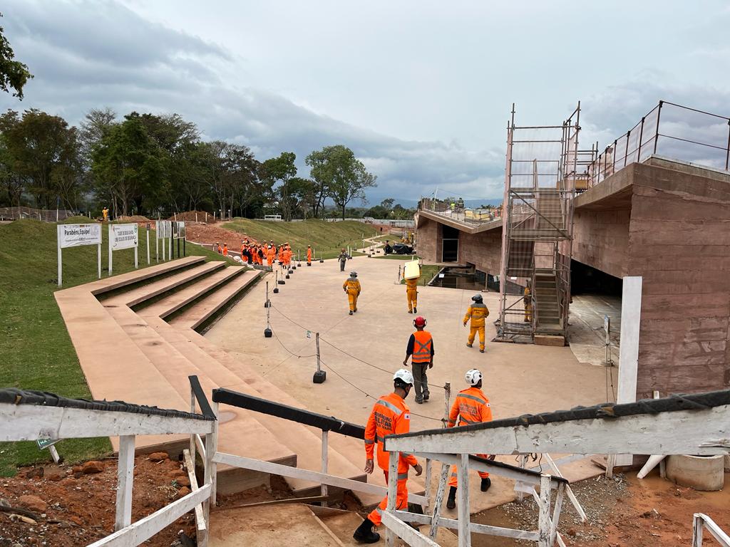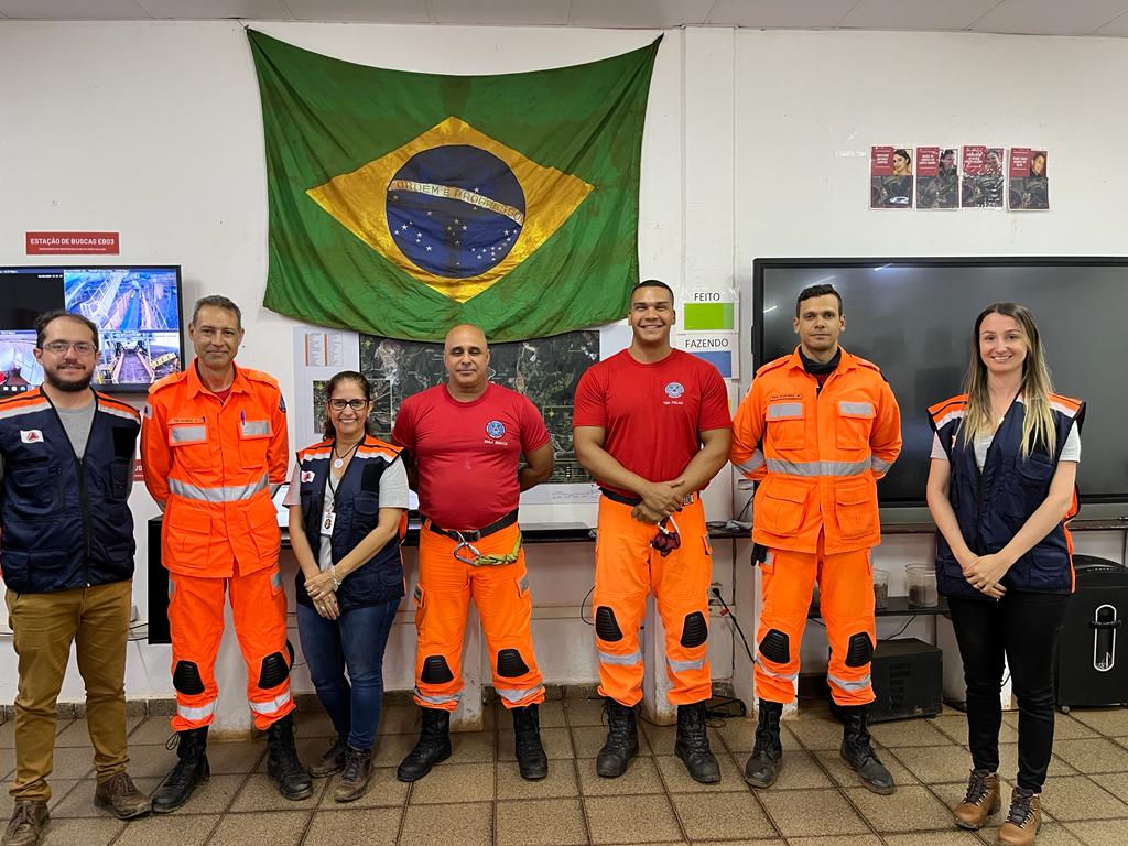 Na chegada à base Bravo, a equipe foi recepcionada pelo Major Enock (Comandante do Incidente) e pelo Tenente Queiroz (Oficial de Operações). A seguir foi realizada uma visita de campo, destacando-se os seguintes pontos: Posto de Comando do Incidente (PC/Base Bravo) onde foi possível conhecer as instalações padronizadas do Sistema de Comando de Operações (SCO); O Terminal de Carga do Feijão (TCF), no qual estão localizadas as Estações de Busca (EB), num total de 5 estações; O mirante do TCF, de onde se tem uma visão privilegiada de todas as Estações de Busca; Estações de busca onde foi demonstrado o funcionamento da estratégia de Busca nº 08 (atual), com utilização das EB’s e os locais de depósito temporário de materiais; A Barragem BVI (água), que na data do evento apresentou situação de risco de rompimento, uma vez que parte de sua base foi arrastada pelos rejeitos oriundos da barragem B1 (rompida); A ombreira da Barragem B1 (que rompeu); O mirante da Cava do Feijão, onde se tem uma vista privilegiada da mina do Feijão, onde se extrai os minérios. Após intervalo para almoço, os integrantes do corpo técnico da CIRRD participaram de uma apresentação realizada pelo Major Enock (Comandante do Incidente) e pelo Tenente Folha (Oficial de Planejamento), onde foram explanados alguns aspectos relevantes da operação, tais como: Estratégias de buscas utilizadas, o SCO estabelecido, técnicas e materiais utilizados, emprego de tropa, apoio de agências, dentre outros. Após a apresentação, os integrantes do corpo técnico da CIRRD voltaram a campo, acompanhados do Tenente Queiroz, onde os seguintes locais foram visitados: retirada de material/rejeito (Remansos 1 e 3, Dique 2, Parque das Cachoeiras, Canvas) e, por fim o Memorial das vítimas do rompimento da barragem, em fase final de construção. A visita se demonstrou importante para que a equipe técnica entendesse com mais profundidade a envergadura e impactos socioambientais provocados pelo rompimento da barragem e, ainda, o nível de organização e resposta ao evento. Da experiência espera-se agregar além do conhecimento, uma visão de todo ciclo de PDC (proteção e Defesa Civil), traduzindo-se na gestão do risco de desastres, bem como no seu gerenciamento, quando não puder ser evitado.