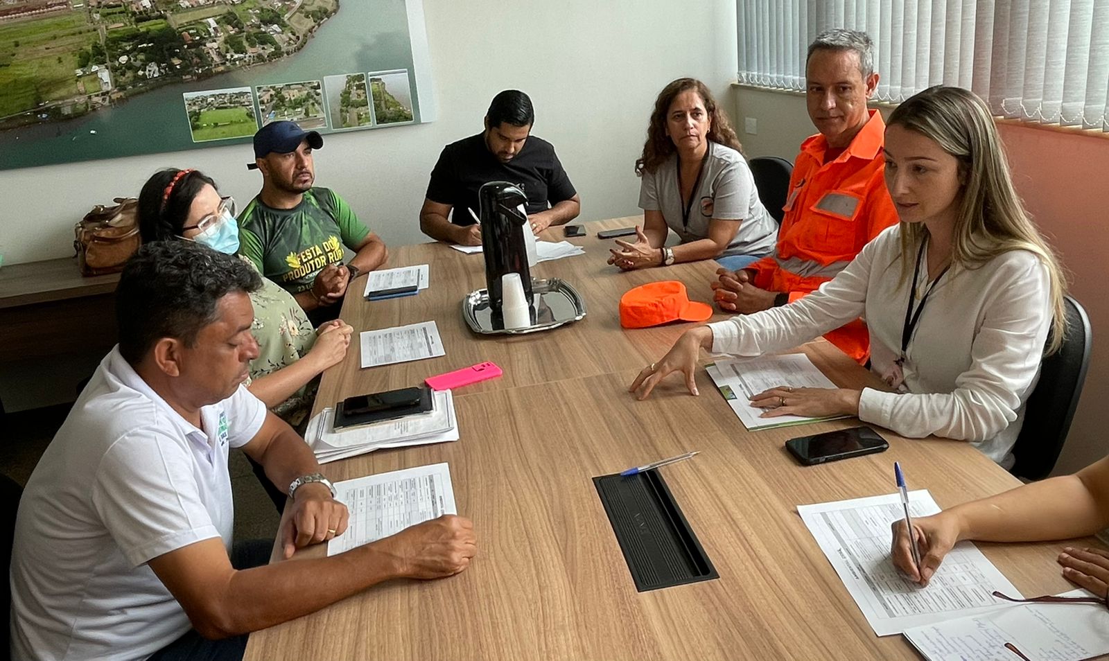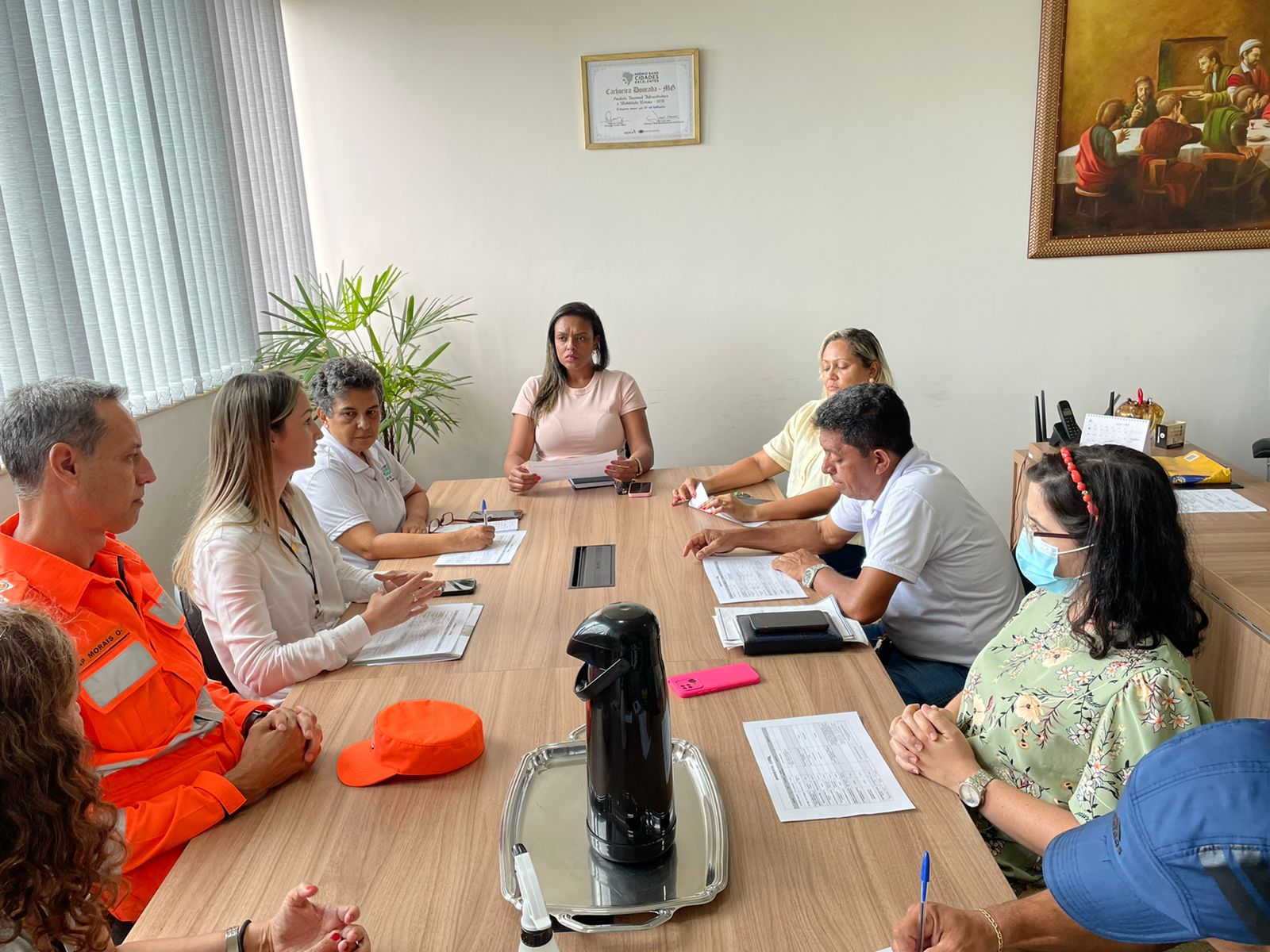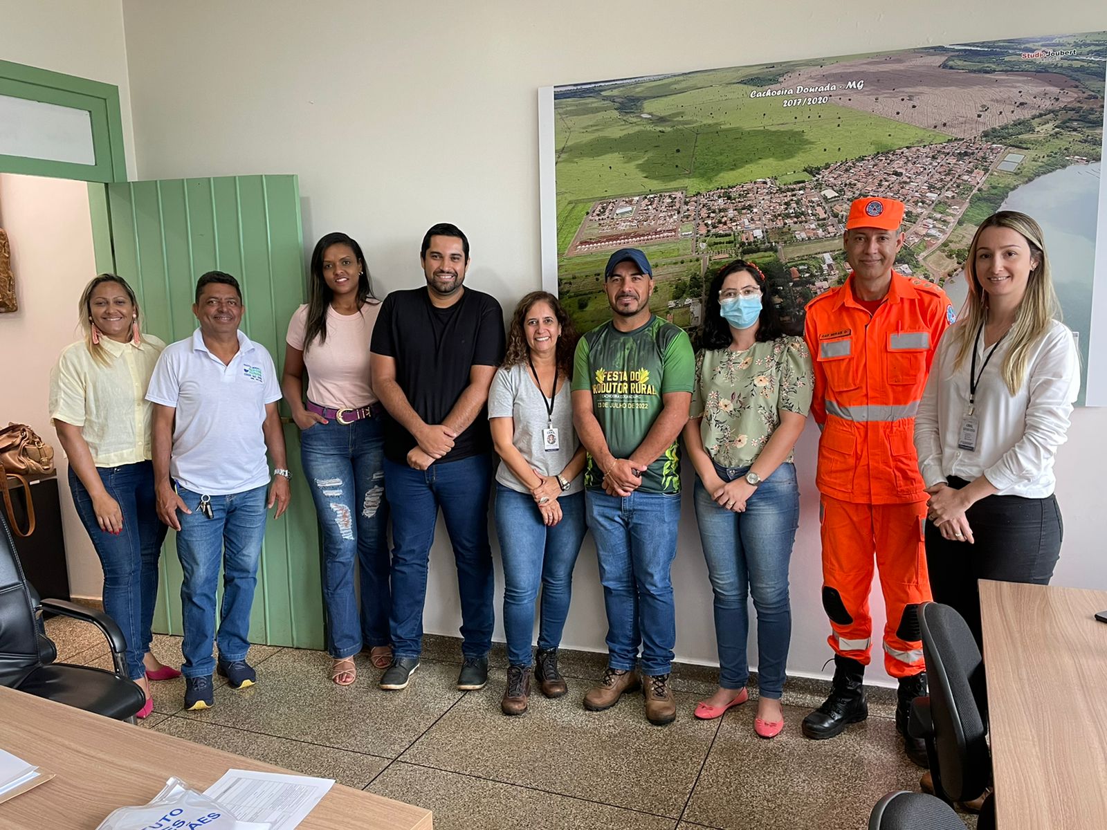 Consultoria, assessoria e execução de projetos. Esses são os principais pilares de trabalho do CIDES (Consórcio Público Intermunicipal de Desenvolvimento Sustentável do Triângulo Mineiro e Alto Paranaíba). A autarquia tem atualmente 20 municípios associados, entre eles, Cachoeira Dourada – MG. E para estreitar ainda mais a parceria com o município, a equipe do CIDES se reuniu com secretários municipais na manhã desta sexta-feira (27) na Prefeitura de Cachoeira Dourada. Participaram da reunião a secretária executiva do CIDES Cristina Martins, a engenheira ambiental Nayara Ribeiro, o capitão Morais, do Corpo de Bombeiros, os secretários municipais de Obras, Walter Perreira, de Agricultura e Meio Ambiente, Lion Fernandes, de Governo, Paulo Ricardo, de Água e Esgoto Keyla Bispo, de Turismo, Crislaine, além do assessor de Comunicação José Eduardo e a engenheira civil Mariana Santos.