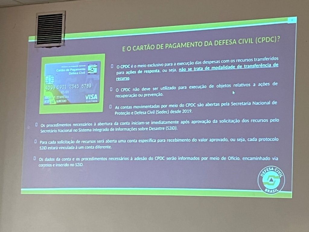 “É no município que os desastres acontecem, por isso, é fundamental a estruturação e o fortalecimento do órgão municipal de proteção e defesa civil para que, em conjunto com os órgãos setoriais, com a CIRRD e com a comunidade, os COMPEDEC´s possam coordenar as ações de prevenção, preparação e mitigação”.